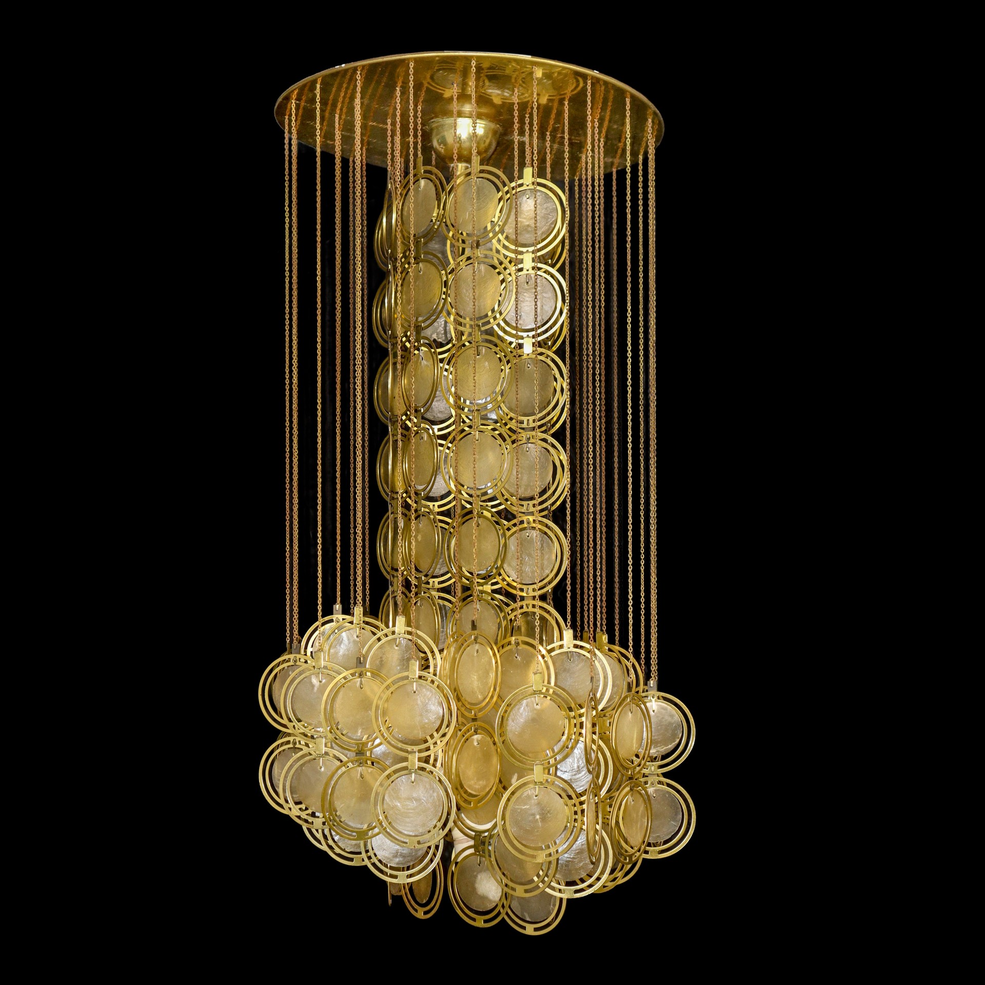 Verner Panton (Gamtofte 1926 - Copenaghen 1998) - Lampadario in metallo e madreperla, 60's