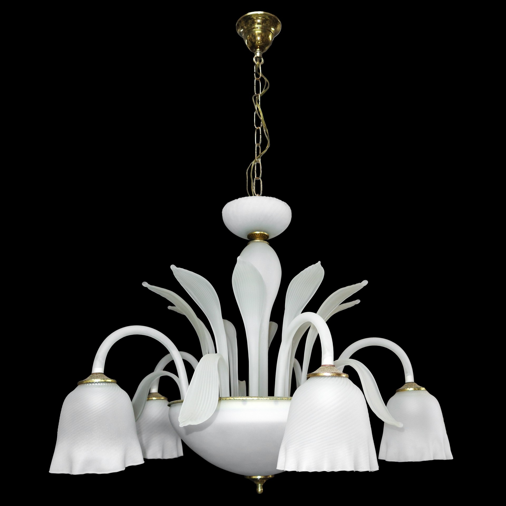 Lampadario in vetro di murano bianco satinato a 5 luci