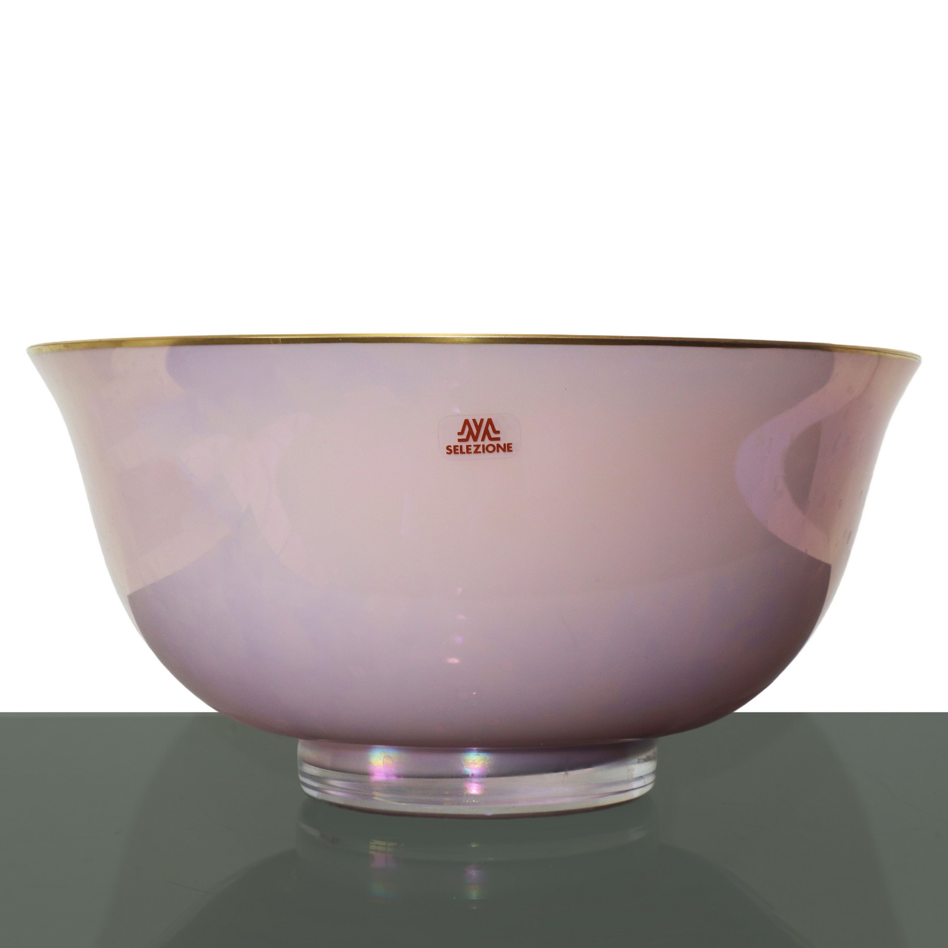 Carlo Moretti (1958) - Ciotola in vetro di Murano opalescente rosa e bordo dorato, 70's