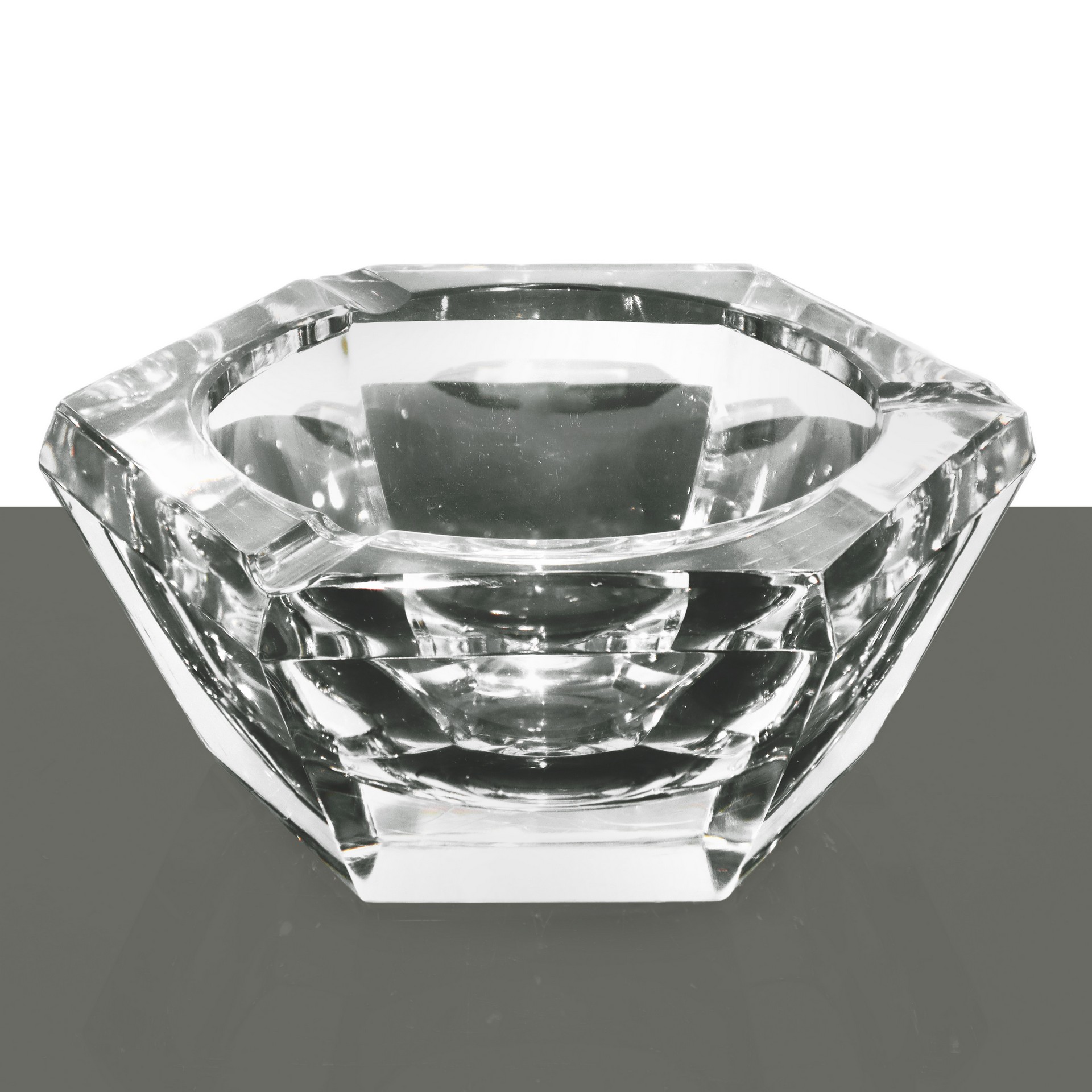 Val St.Lambert - Posacenere esagonale in cristallo h cm 7X16,5 Firma della manifattura a punta di diamante alla base