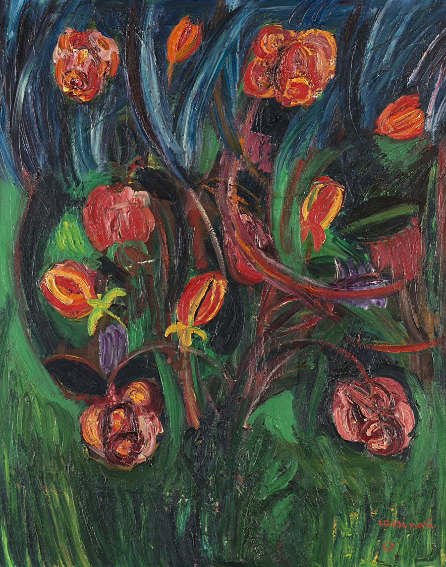Bruno Cassinari (Piacenza 1912 - Milano 1992) - "Senza titolo" 1967 olio su tela, cm 80x65 Firmato e datato '67 in basso a destra Opera accompaganta da certificato di autenticità su fotografia rilasciato dal Comitato per il Catalogo Generale dell'Opera di Bruno Cassinari con il n.3339/C857 in data 13.11.2014