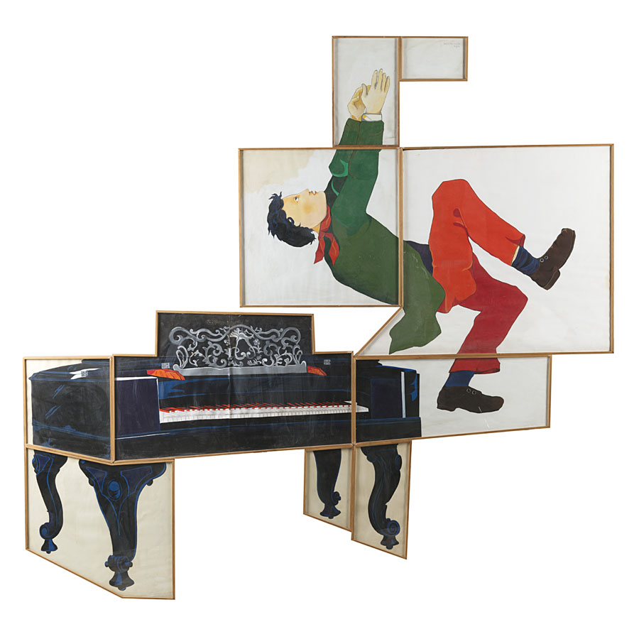 Aldo Spoldi (Crema 1950) - "Maestro Pulce" 1981 tempera su carta e assemblage di dieci elementi, cm 195x205 Firmato e titolato in alto a destra Provenienza Studio Marconi, Milano