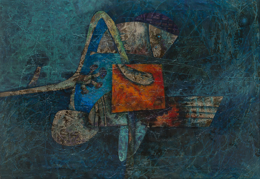 Gianni Dova (Roma 1925 - Milano 1991) - "Ramo d'ortensie e fichi d'India" 1973 olio su tela, cm 90x130 Firmato, titolato e datato "Bretagna 73" al retro Provenienza Galleria Cafiso, Milano Collezione privata, Milano Opera in corso di archiviazione presso l'Archivio Gianni Dova, Milano