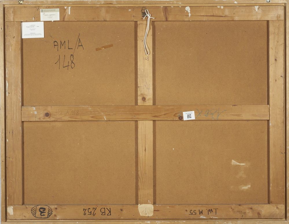 BUENO ANTONIO (1918 - 1985) DOPPIA IMPRONTA. 1960. Olio su masonite. Cm 130,00 x 100,00. firma