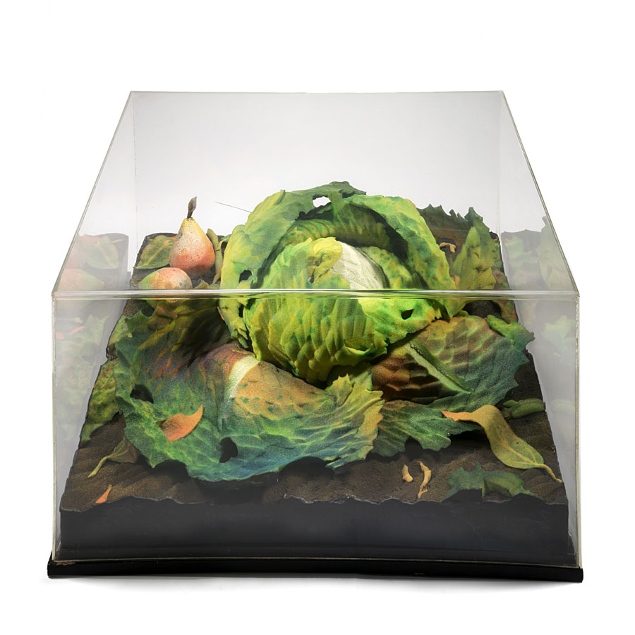 Piero Gilardi (Torino 1942) - "Cavolo e pere" 1987 poliuretano espanso in scatola di plexiglass, cm 50x50x32 Provenienza Galleria Toselli, Milano