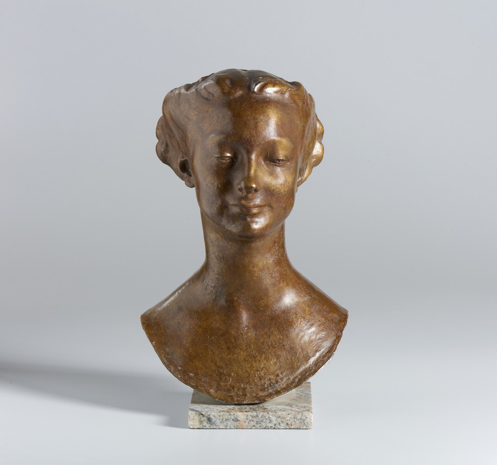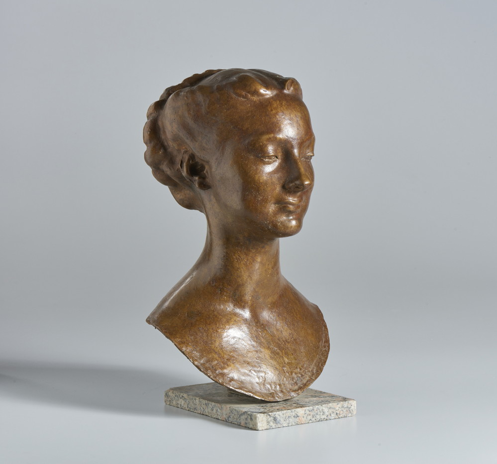 MESSINA FRANCESCO (1900 - 1995) FANCIULLA LOMBARDA (TESTA) . 1946. Bronzo. Cm 27,00 x 44,00 x 20,50. dimensione senza base: 42x27x20.5 cm