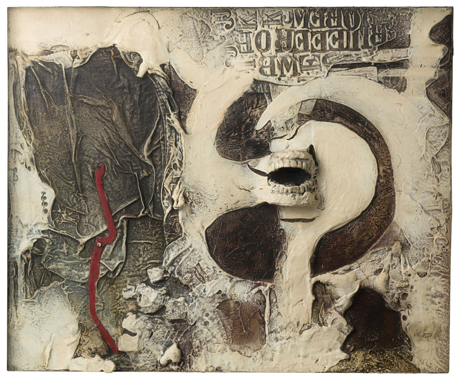 Lucio Del Pezzo (Napoli 1933) - "Senza titolo" 1960 olio, tecnica mista e assemblage di materiali su tela, cm 44,5x54 Firmato e datato 60 in basso a destra