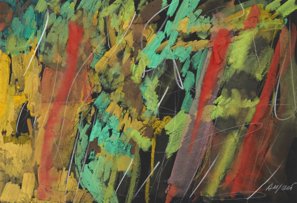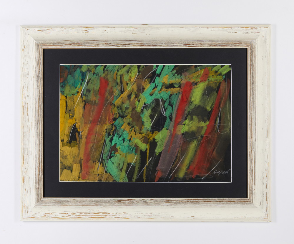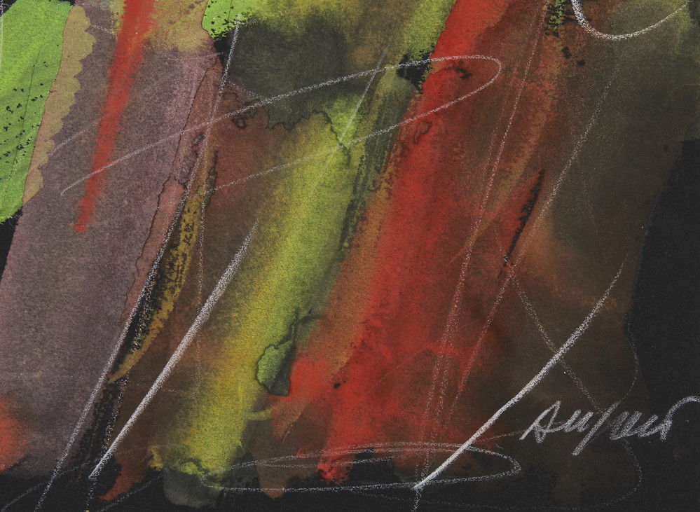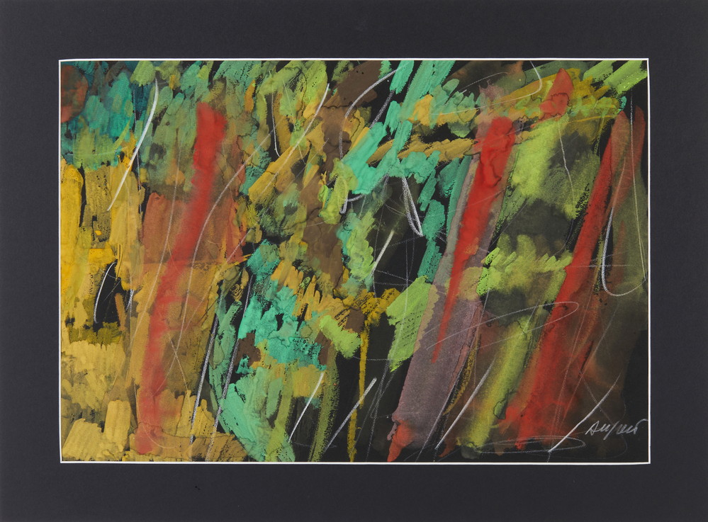 RUGGERI PIERO (1930 - 2009) SENZA TITOLO. 1996. tecnica mista su cartoncino nero. Cm 47,50 x 33,00. firma