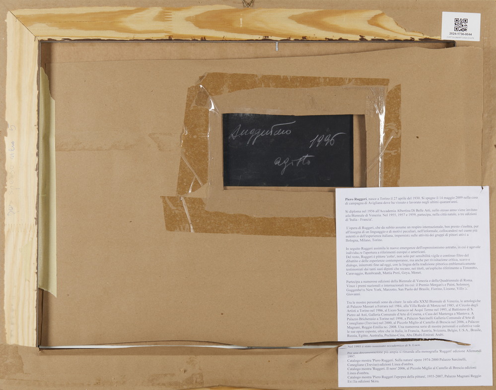 L'opera è accompagnata da certificato di archiviazione a cura della Fondazione Piero Ruggeri