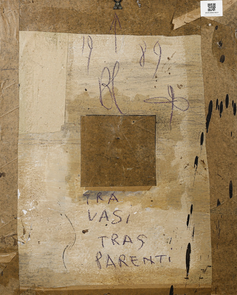 CECCOBELLI BRUNO (n. 1952) TRAVASI TRASPARENTI . 1989. tecnica mista su tavola. Cm 59,00 x 74,00 x 5,00. sul retro: titolo, firma e anno