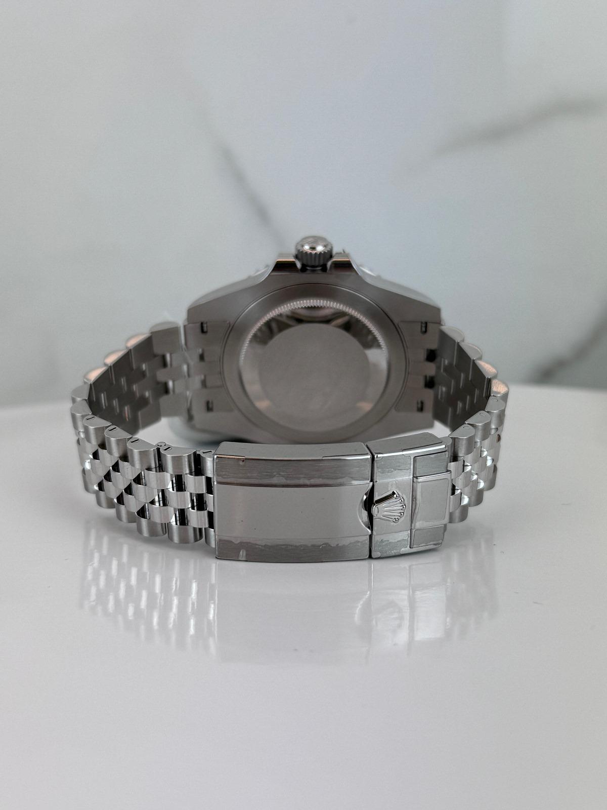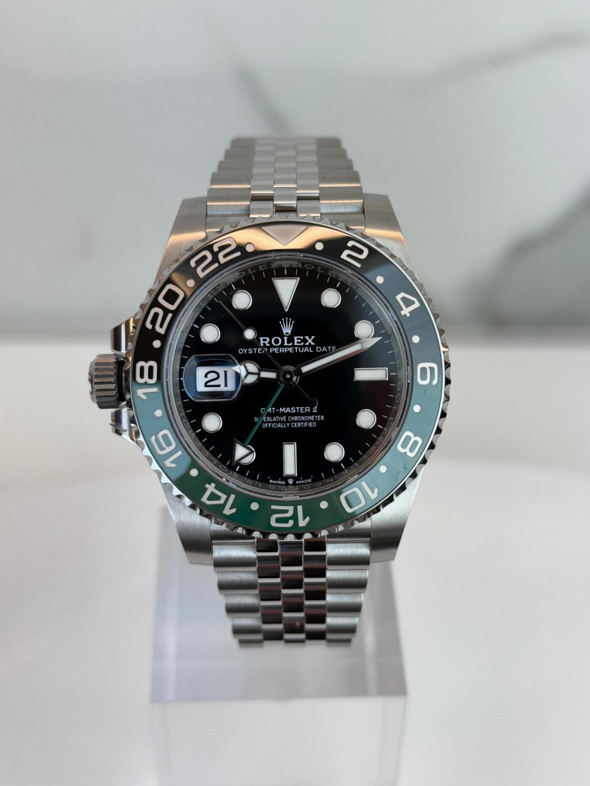 Marca Rolex Modello (Orologio) GMT-Master II Numero di referenza 126720VTNR (Sprite) Carica Automatico Materiale della cassa Acciaio Materiale cinturino Acciaio Anno di produzione 2023 Corredo documenti originali, no box Materiale della cassa Acciaio Diametro 40 mm Impermeabile 10 ATM Materiale lunetta Ceramica Vetro Vetro zaffiro Quadrante Nero Numeri sul quadrante Senza numeri Cinturino Materiale cinturino Acciaio Colore cinturino Acciaio Chiusura Déployante Materiale chiusura Acciaio Funzioni Data, GMT