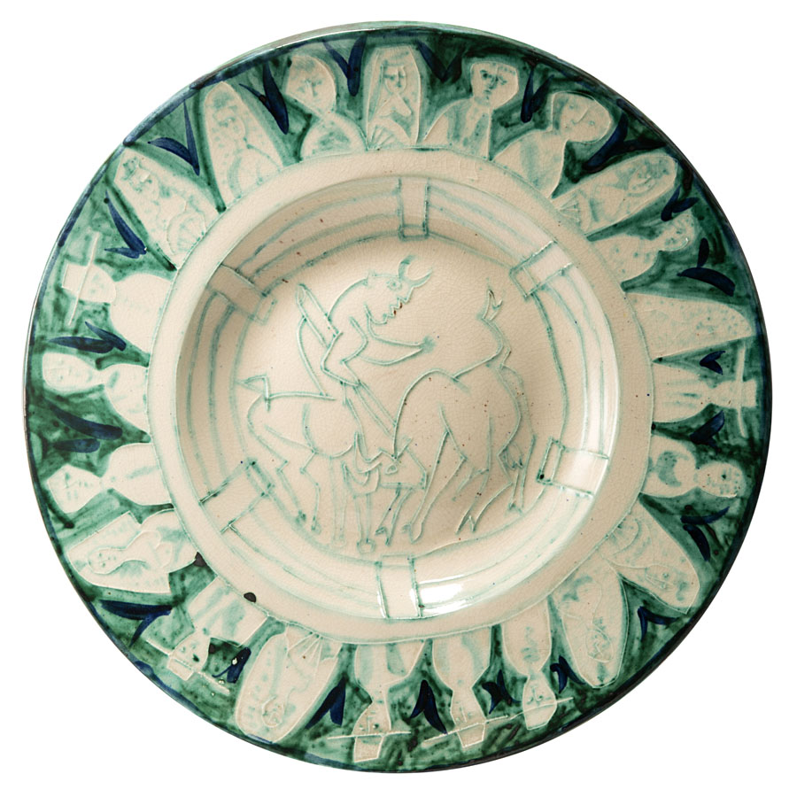 Pablo Picasso (Malaga 1881 - Mougins 1973) - "Corrida aux personnages" 1949 piatto in ceramica smaltata, cm 39 Firmato e datato 49 al retro Empreinte Originale de Picasso Provenienza Galleria del Naviglio, Milano