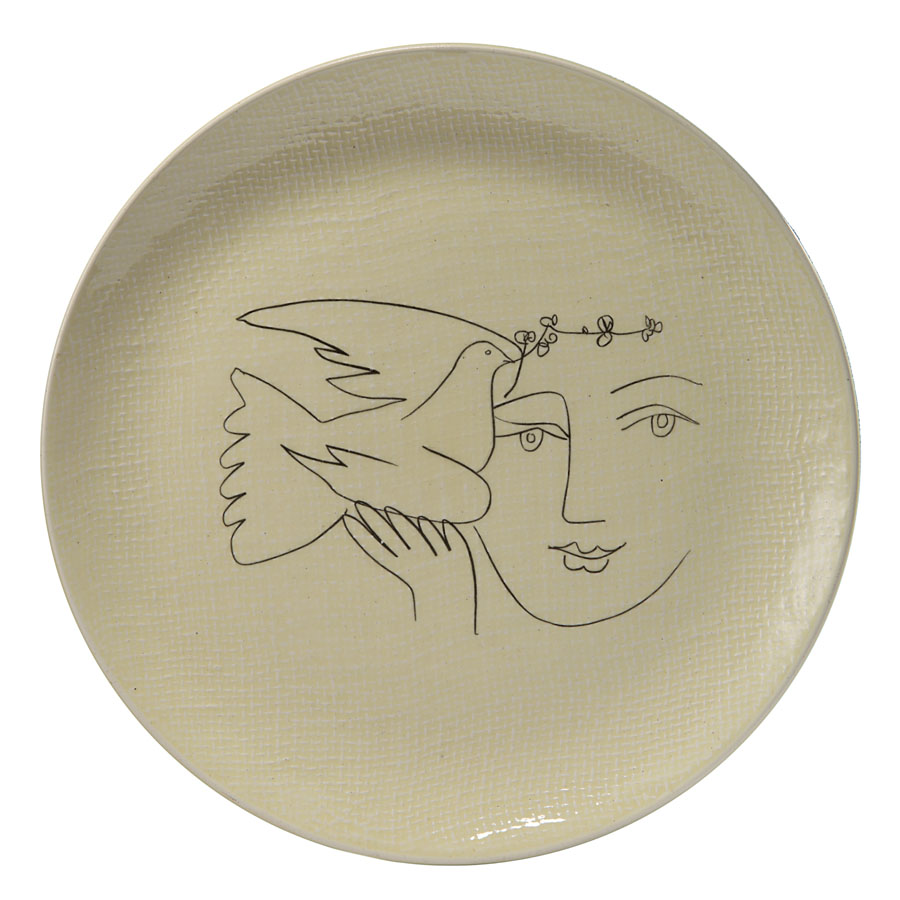 Pablo Picasso (Malaga 1881 - Mougins 1973) - "Visage et colombe" piatto in ceramica smaltata, cm 23 Firmato al retro Opera accompagnata da attestato di libera circolazione Export licence available for this lot