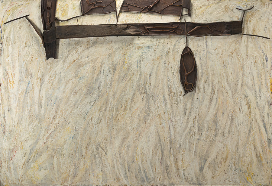 Giuseppe Maraniello (Napoli 1945) - "Senza titolo" 1985 olio e assemblage di ferro e legni su tela, cm 167x240 Firmato in basso a destra Provenienza Galleria Annunciata, Milano