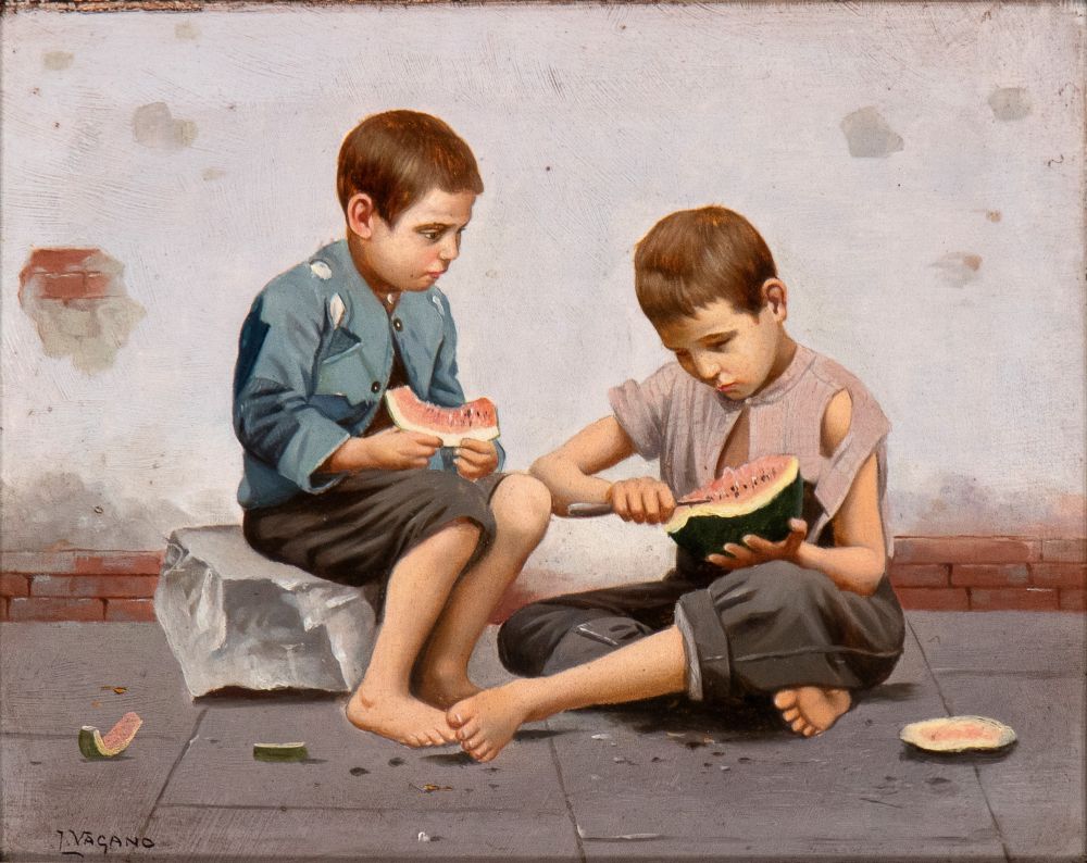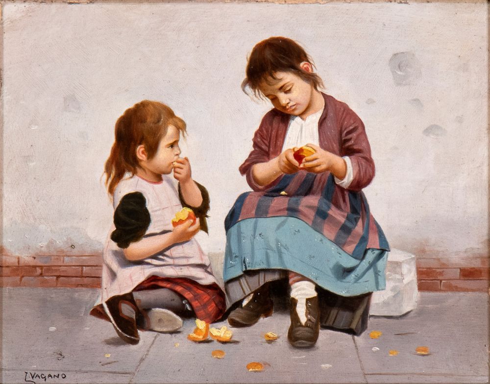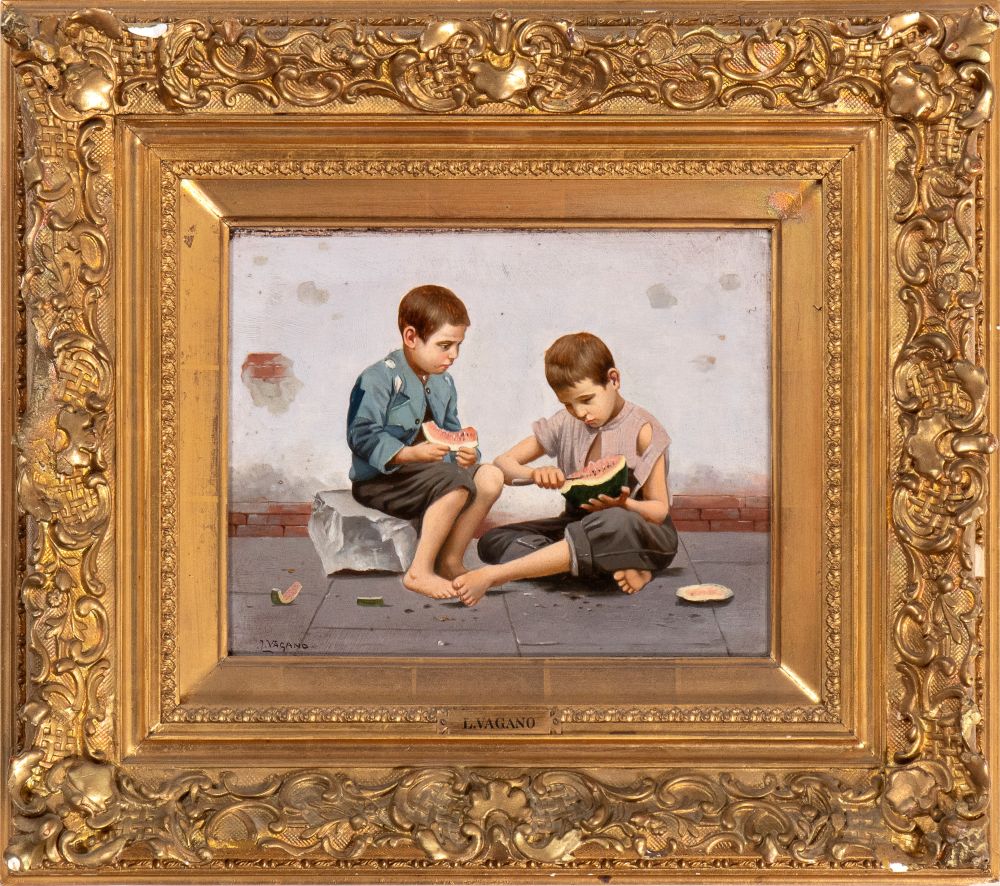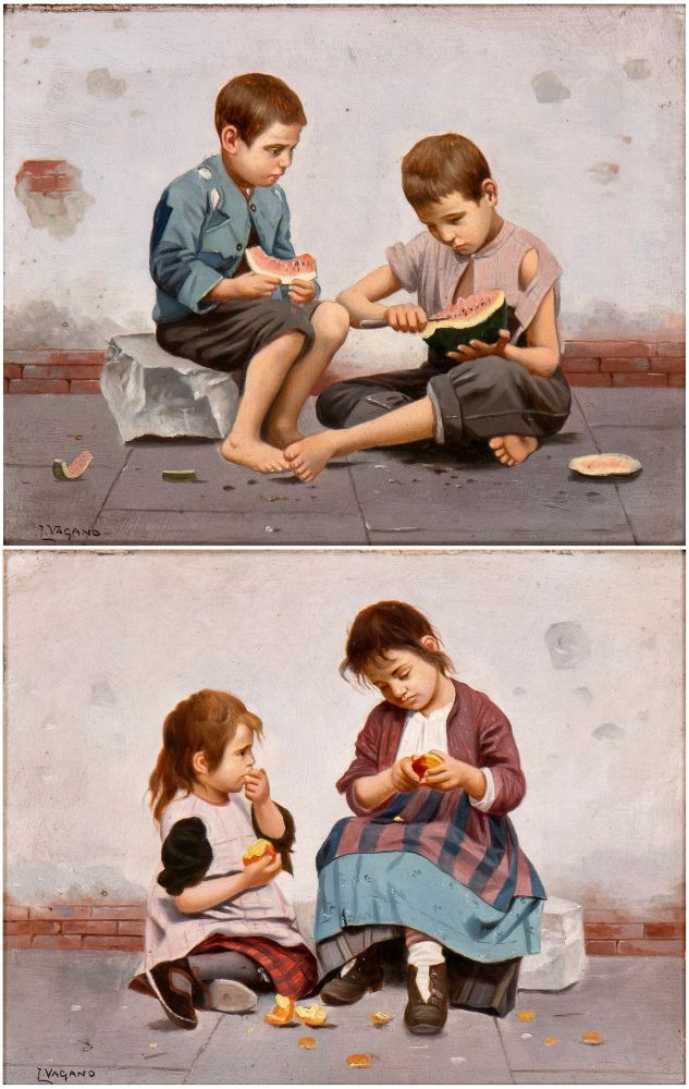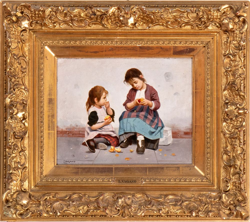 L. VAGANO (XIX sec.)<br>Lotto di due quadri raffiguranti coppie di bambini