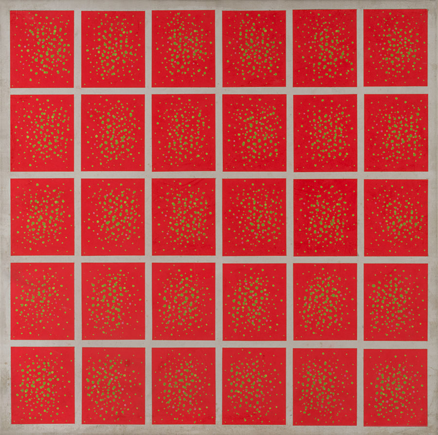 Kuno Gonschior (Wanne-Eickel 1933 - Bochum 2010) - "ROT-GRUN-VIO=Q." 1966/1967 acrilico su tela, cm 80x80 Firmato, titolato e datato 1966/67 al retro