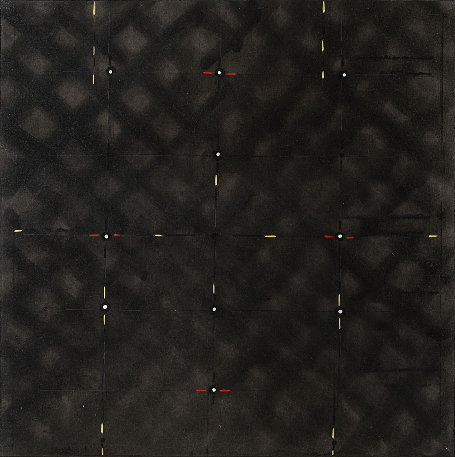 Gastone Biggi (Roma 1925 - Tordenaso 2014) - "Luce enigma" 1990 acrilico su tela, cm 70x70 Firmato, titolato e datato 90 al retro Opera accompagnata da certificato di autenticità su fotografia rilasciato dall'Archivio Biggi, Langhirano (Parma) e registrata con il n. 1532