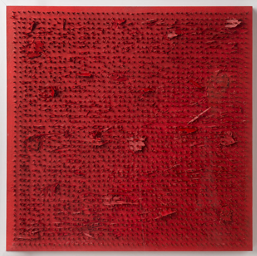Bernard Aubertin (Fontenay aux Roses 1934) - "Tableau clous" 1969 ferro e acrilico su tavola, cm 50x50 Firmato e datato 1969 al retro
