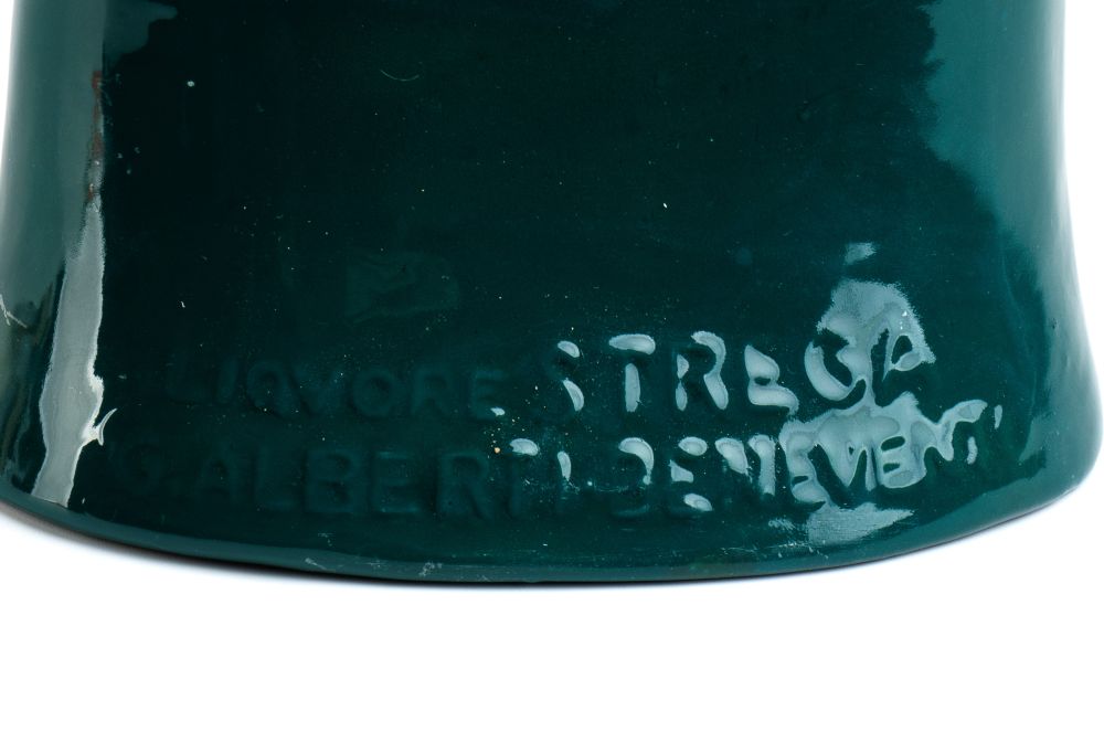 Bottiglia firmata Rometti sul fondo, al retro inscrizione a rilievo del Liquore Strega G. Alberti Benevento