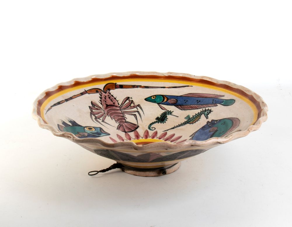 RICHARD DÖLKER (Schönberg 1896 - Kohlgraben 1955) <br>Grande piatto con decorazione di pesci e molluschi