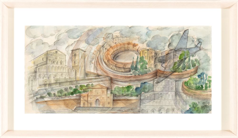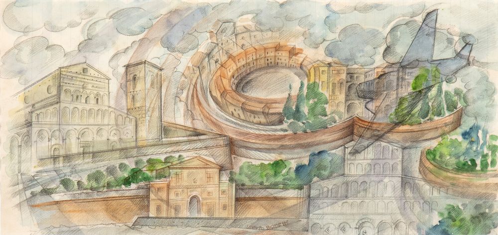 UBERTO BONETTI (Viareggio 1909 - 1993) <br>Volo su Lucca
