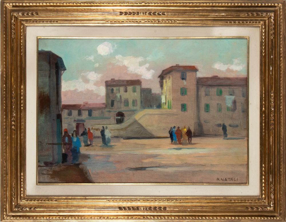 Firmato in basso a destra: R. Natali. Firmato e titolato al retro: Vecchia Livorno, Renato Natali