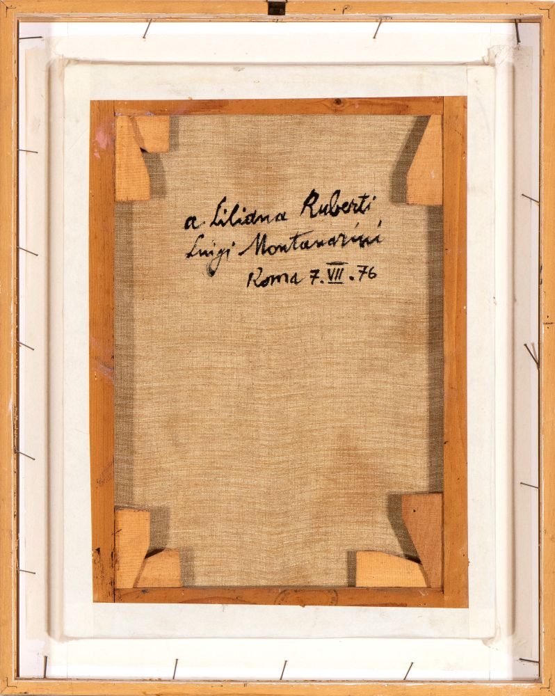 Firmato e datato in basso a destra: Montanarini, 75. Dedica, firma e data al retro