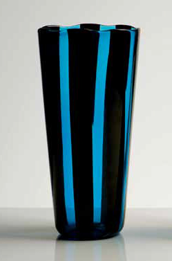Lot 135 | Fulvio Bianconi Vaso a spicchi, in vetro blu a fasce verticali nere 1950...