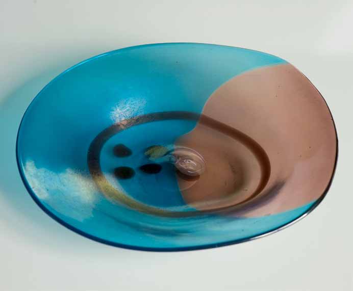 Carlo Scarpa Piatto circolare in vetro bicolore a macchie e lievemente...