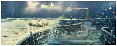GIO BATTA LEPORI 1911 - 2002 Nubifragio alla terrazza Olio su tavola 80 x 200. Firma in b. a d.; sul verso etichetta e firma studio dell’artista.