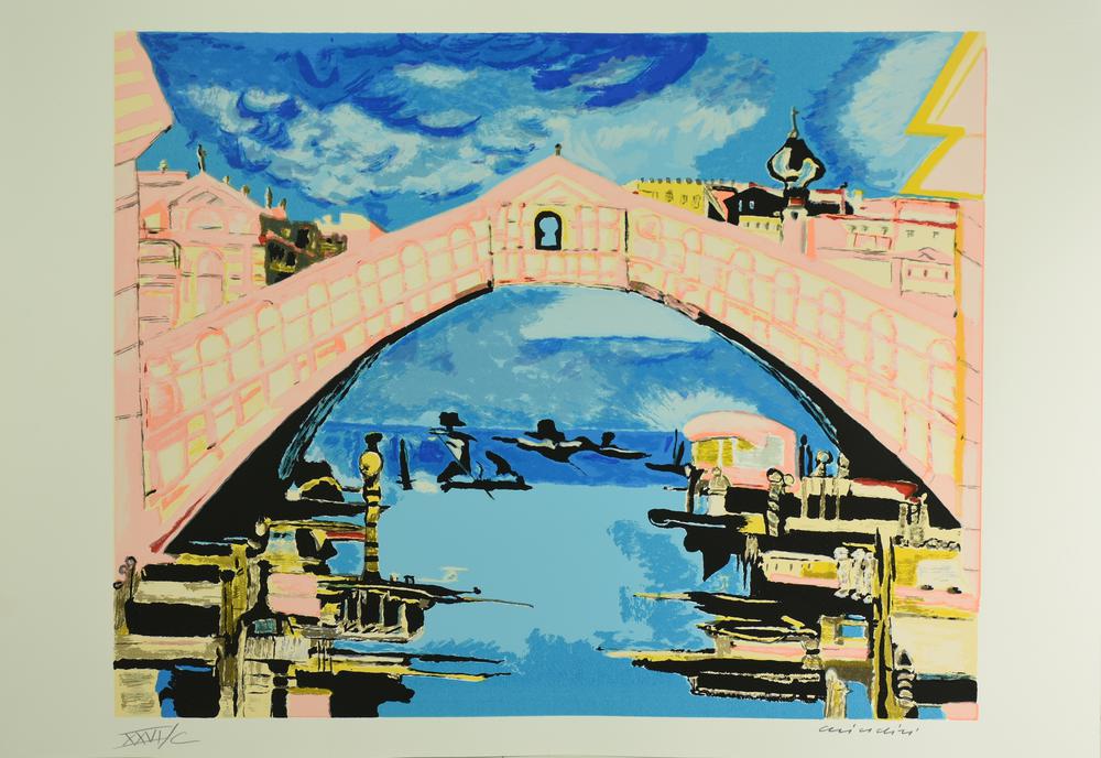Remo Brindisi VENEZIA, PONTE DI RIALTO serigrafia su carta, cm 50x70; es....