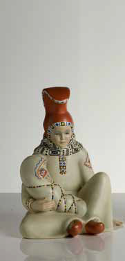 Gruppo raffigurante un eschimese con bambino, Lenci anni ‘30 Ceramica policroma, altezza cm 29. Firmata: Lenci, Torino, Italia Una mano restaurata.