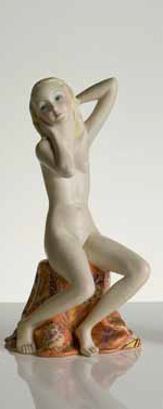 Figura di giovane donna nuda, Lenci anni ‘30 Ceramica policroma, altezza cm 37. Firmata: Lenci, Made in Italy, Torino Restauro ad un dito.