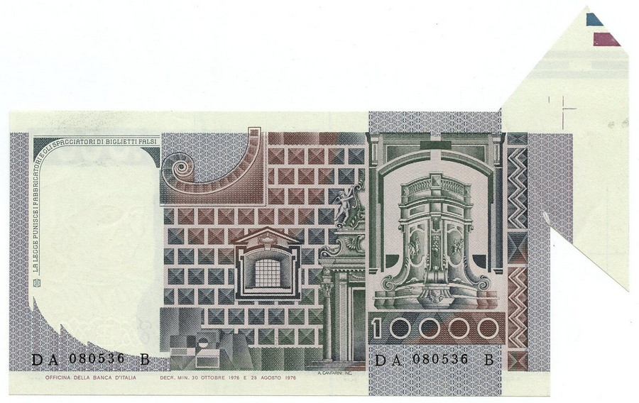 10000 LIRE ERRORE DI STAMPA FARFALLA RITRATTO D'UOMO CASTAGNO 30/10/1976 qFDS. . . NUMERO DI SERIE: DA 080536 B