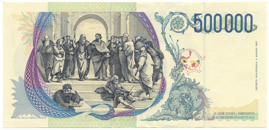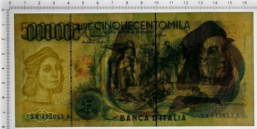 500000 LIRE BANCA D'ITALIA RAFFAELLO SERIE SOSTITUTIVA XA 25/07/2001 SUP+ . . . ONDULAZIONI