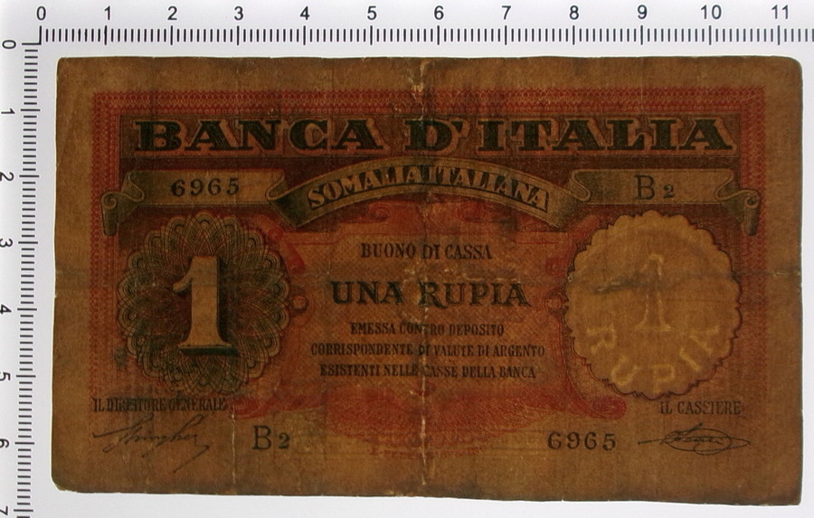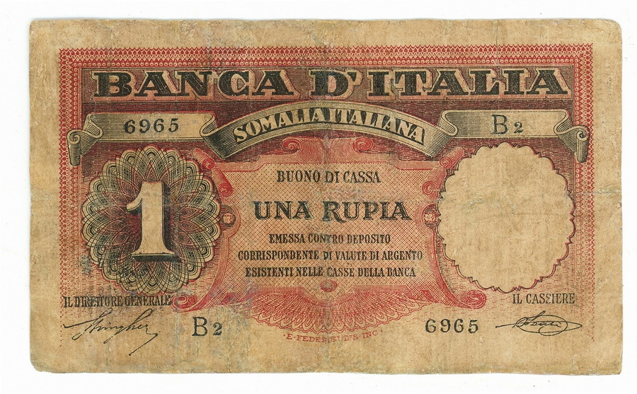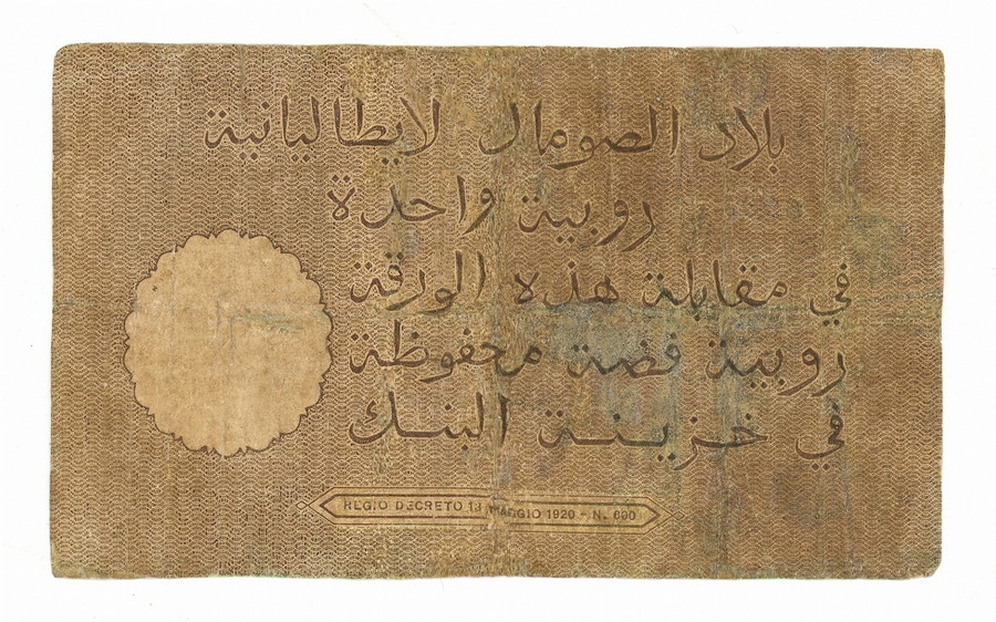 - 1 RUPIA COLONIA ITALIANA DELLA SOMALIA BANCA D'ITALIA 08/09/1920 MB+ .