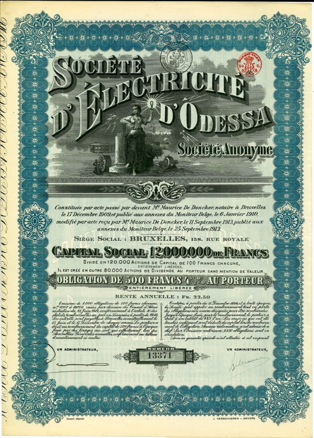 - 1913 - ÉLECTRICITÉ D'ODESSA SOC. D'ANONYME, 1913.