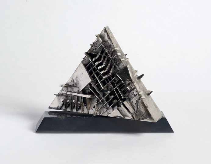 Arnaldo Pomodoro Morciano di Romagna 1926 Piramide, 1986 bronzo argentato, cm 16x12x5. Firmata alla base: Arnaldo Pomodoro 5/9 Esemplare 5/9 Bibliografia: F. Gualdoni, Arnaldo Pomodoro. Catalogo ragionato della scultura, Skira, Milano, 2007, numero 788. Opera registrata presso Arnaldo Pomodoro Studio al numero AP 556.