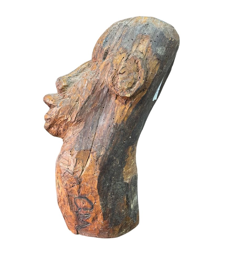 Scultura in legno massello, periodo XIX/XX secolo raffigurante Personaggio. Dimensioni: h50x32x18 cm. Scultura in discrete condizioni come da foto allegate.