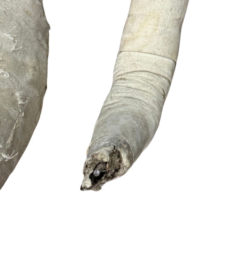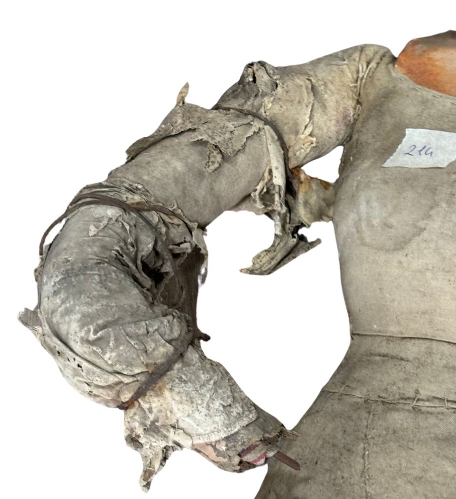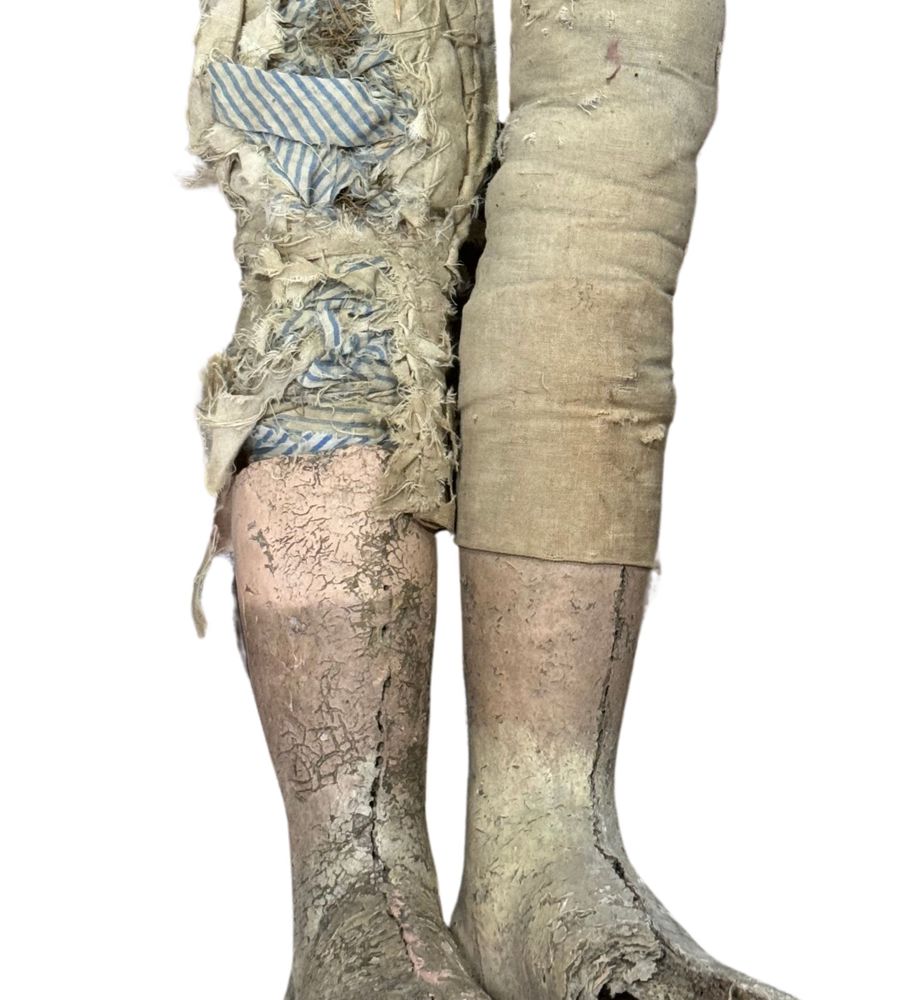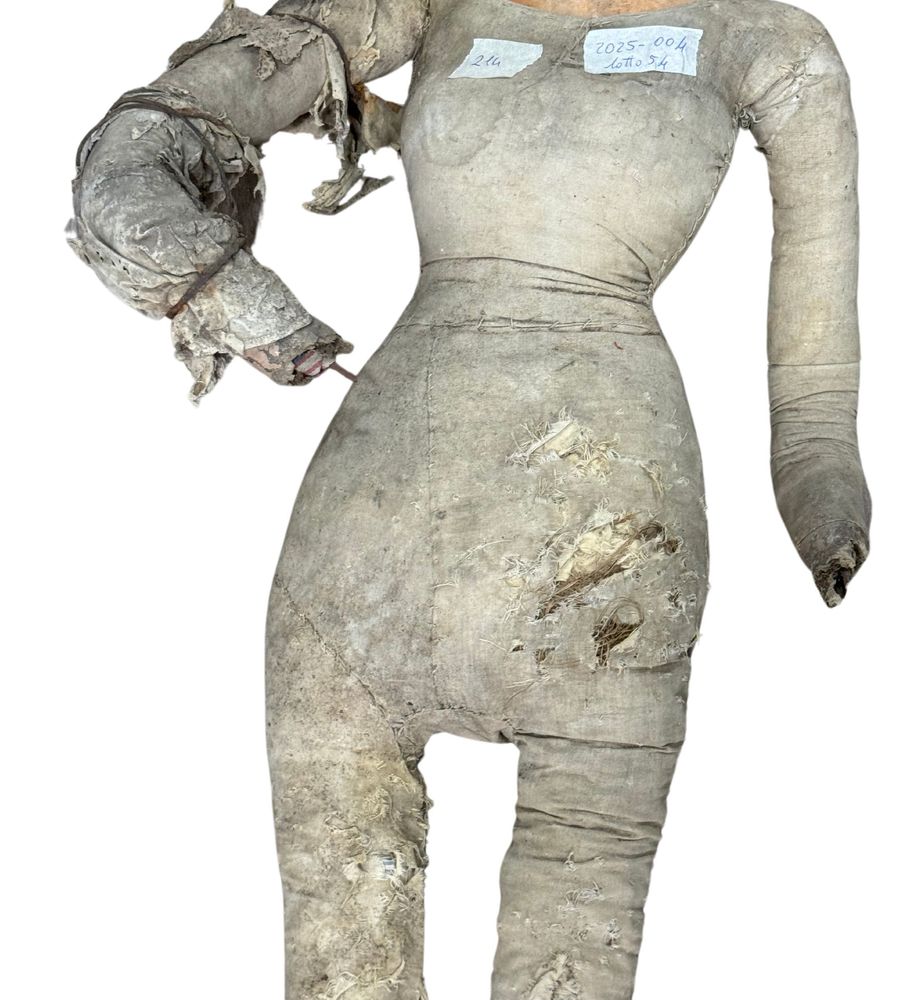Scultura presepiale, periodo XVIII secolo, raffigurante Figura femminile. Così composta: corpo in canapa antica, testa e piedi in cartapesta, occhi in vetro. Dimensioni: h110 cm. Scultura in discrete condizioni, assenza delle mani, con vistosi segni di vissuto come da foto allegate.