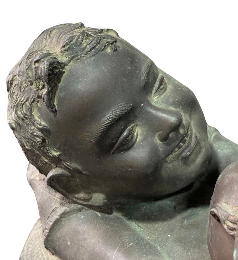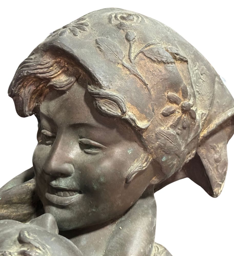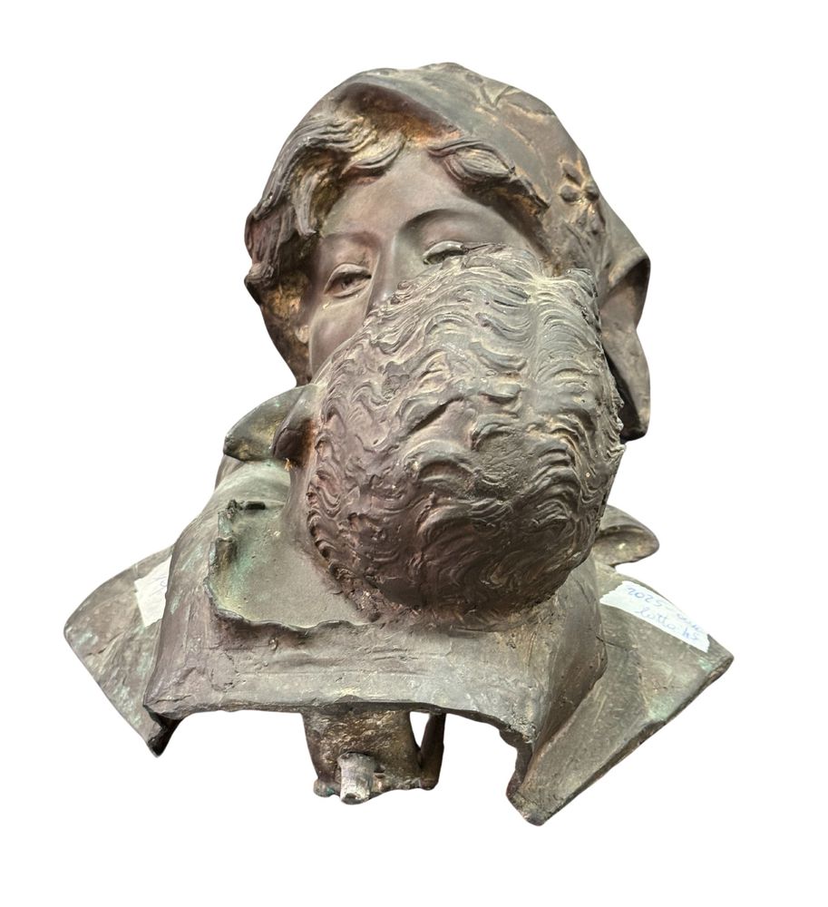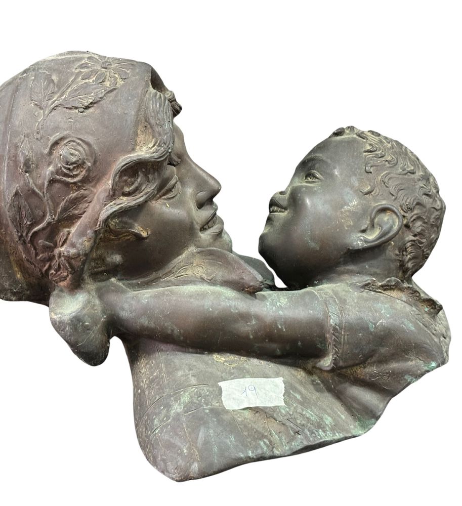 Scultura in bronzo a cera persa, periodo XX secolo, raffigurante Scena materna. Dimensioni: h29x39x35 cm. Scultura in buone condizioni. Reca firma Merente.