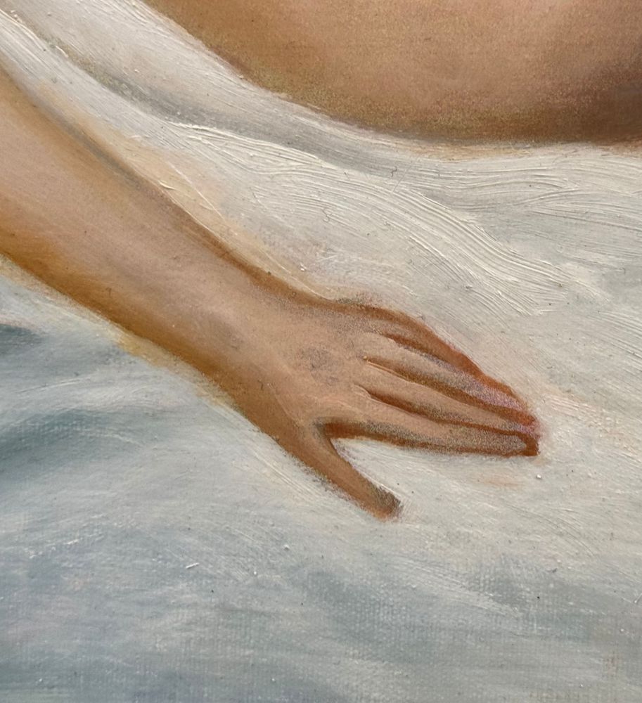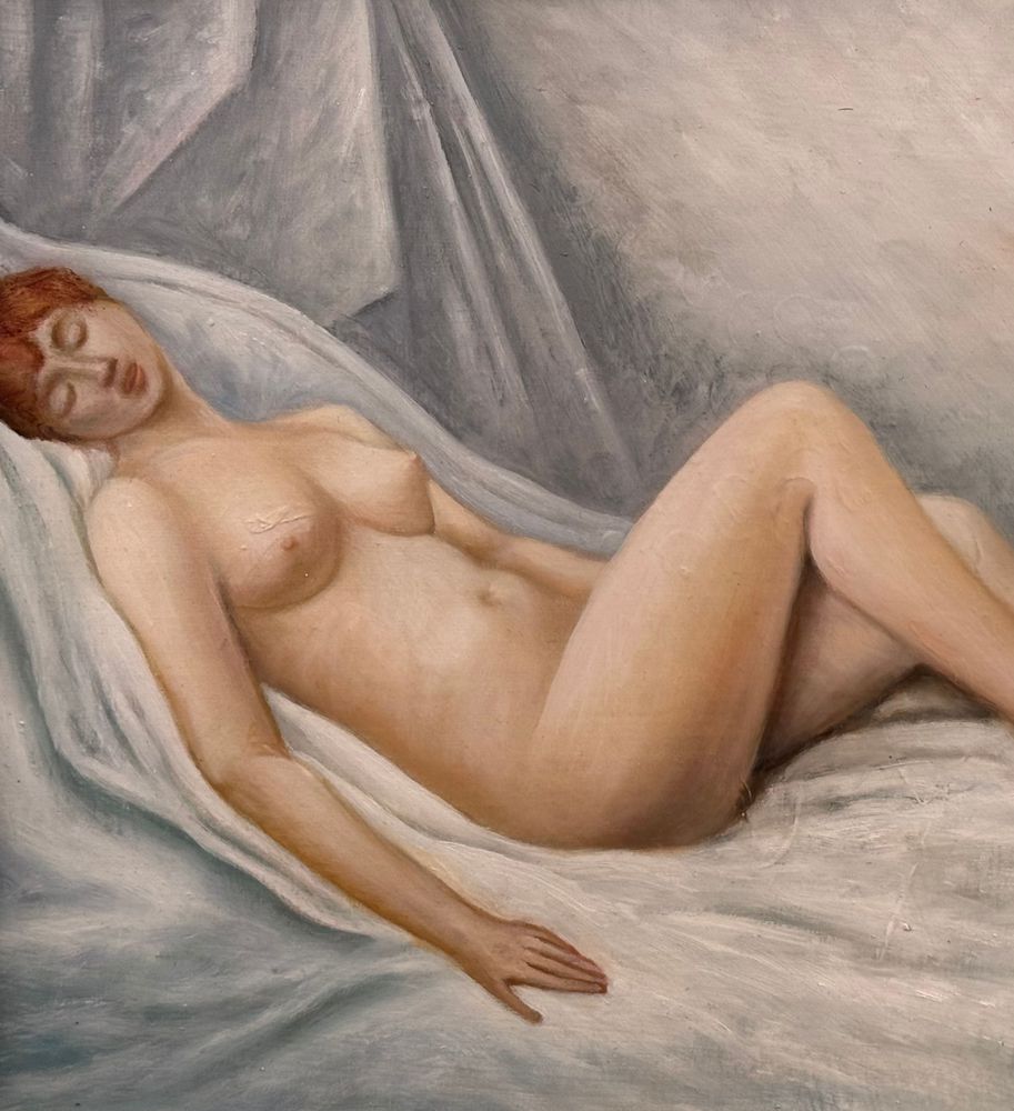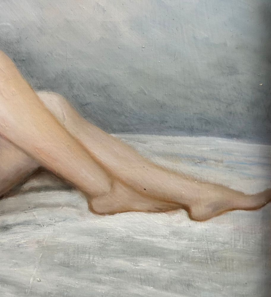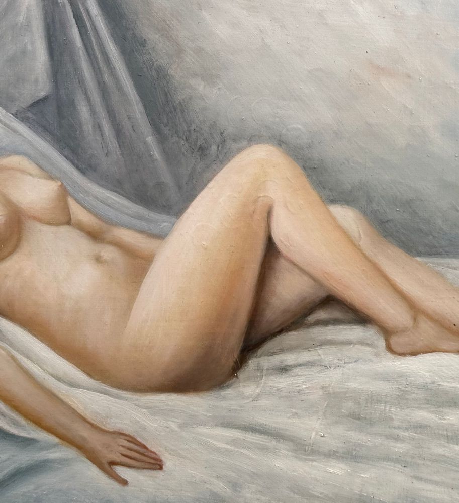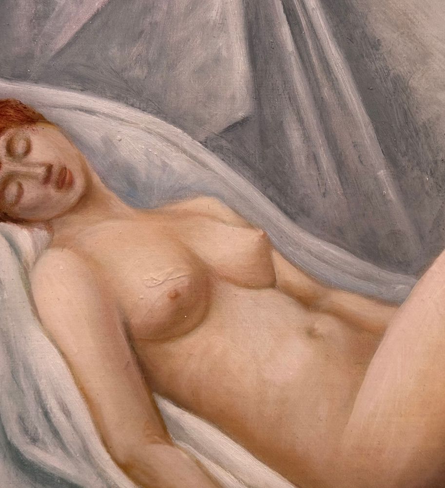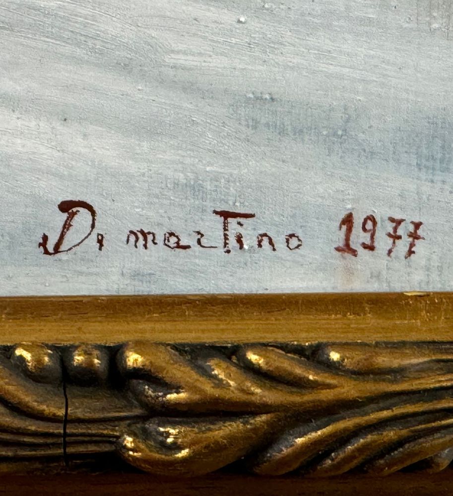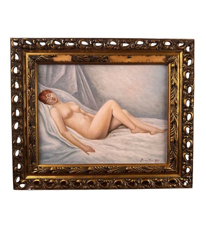Dipinto olio su tela, periodo XX secolo scuola Italiana, raffigurante Nudo di donna. Dimensioni compreso cornice: 59x49 cm. Dimensioni interno cornice: 45x35 cm. Reca firma in basso a destra da Di Martino (1977). Opera in buone condizioni.