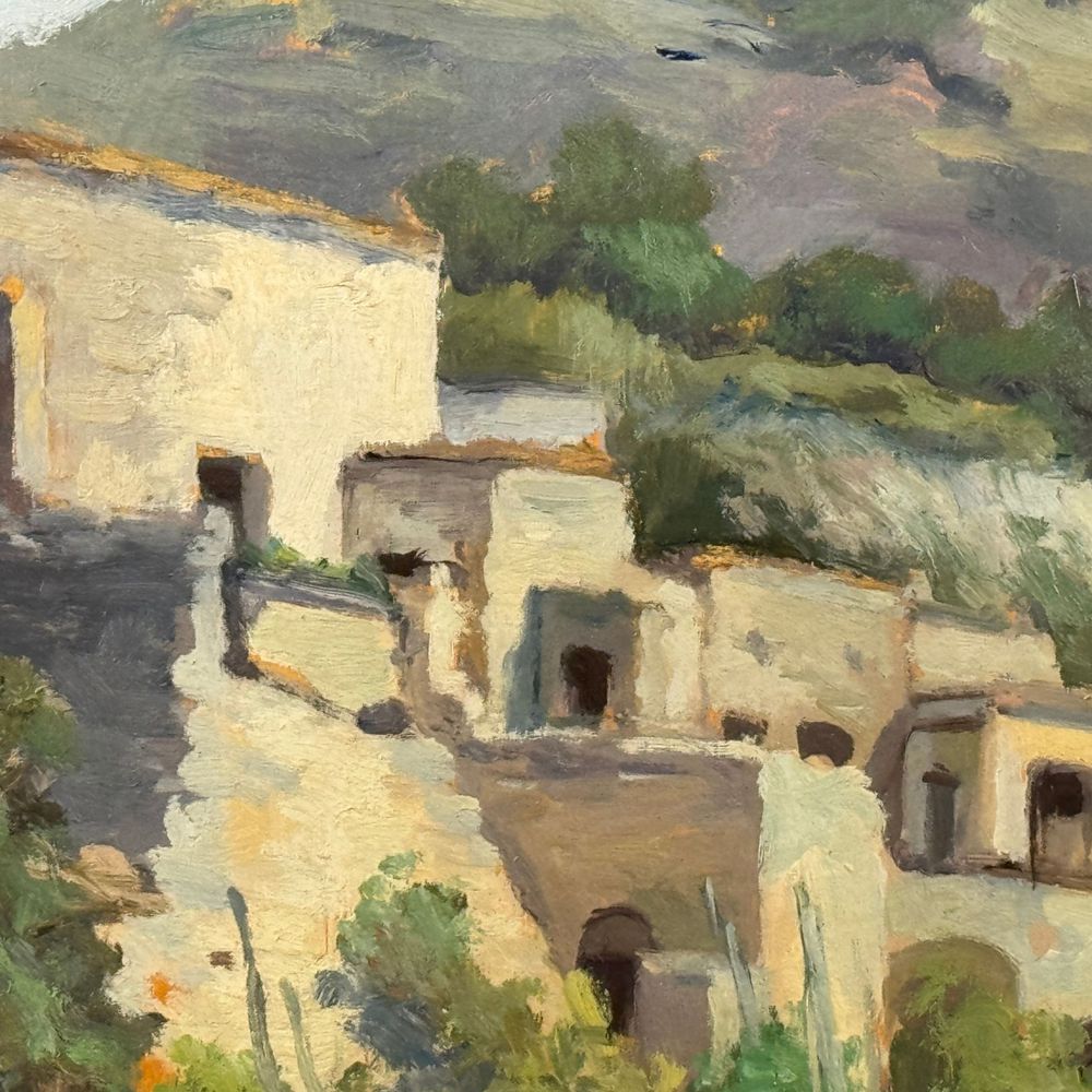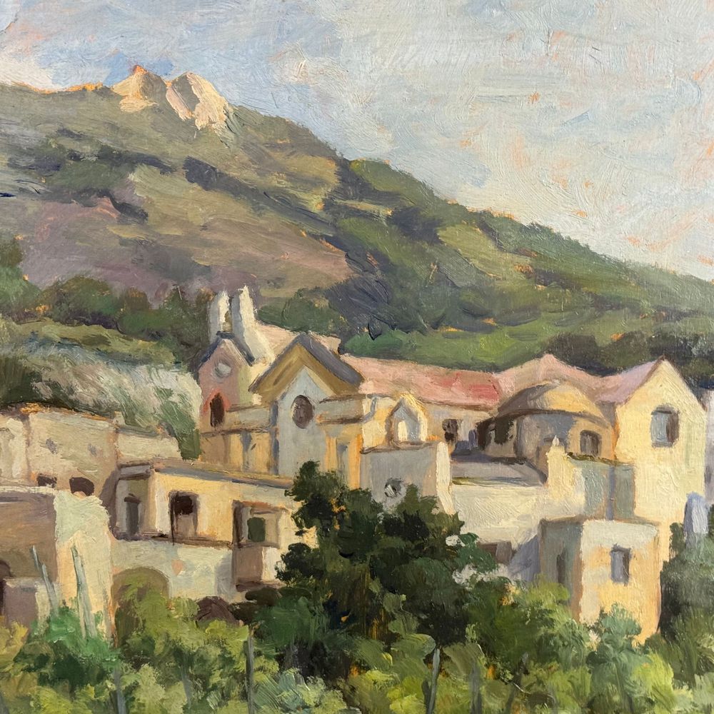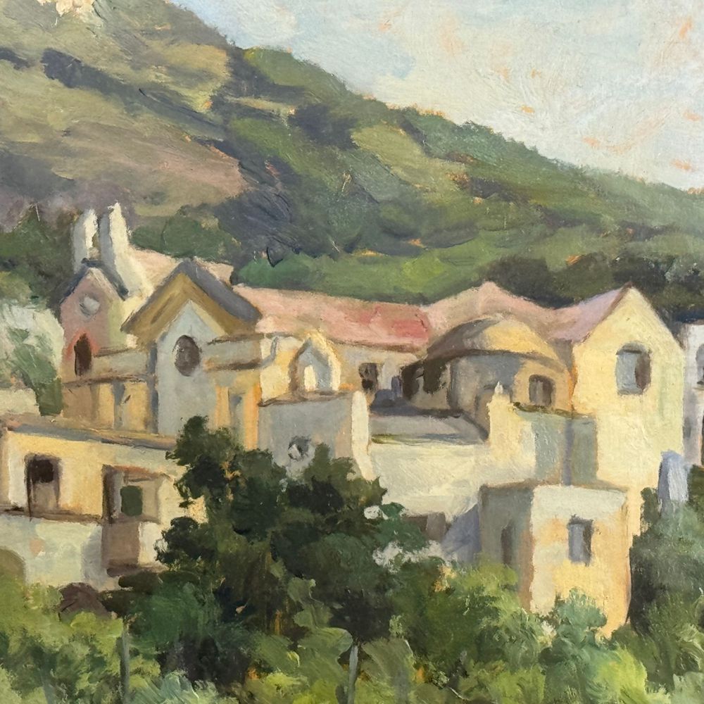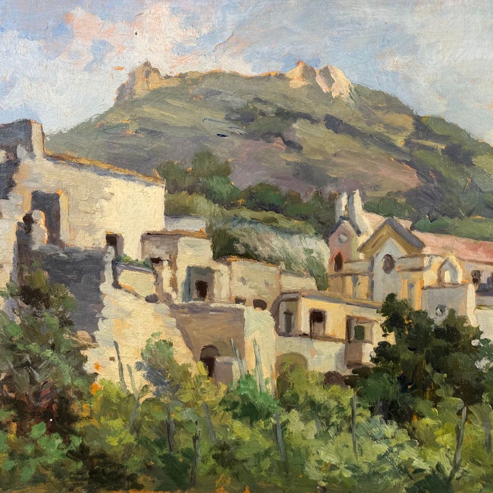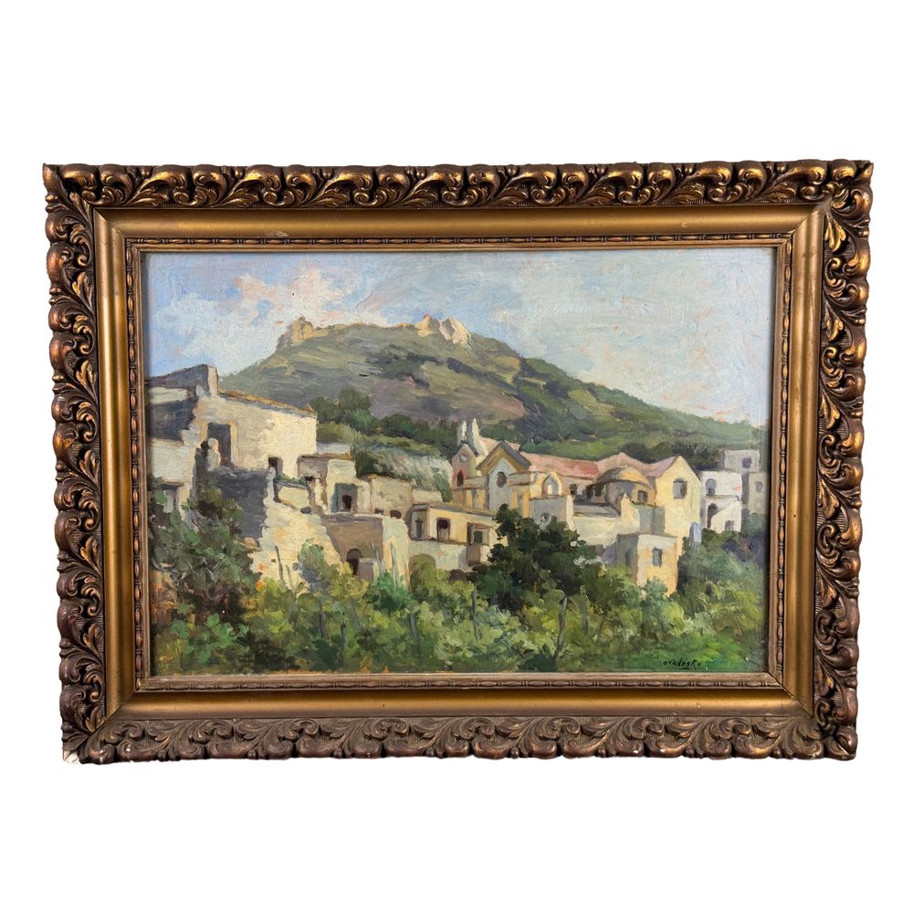 Dipinto olio su tavola, periodo XX secolo scuola Italiana, raffigurante Paesaggio. Dimensioni interno cornice: 50x35 cm. Dimensioni compreso cornice: 61x46 cm. Reca firma in basso a destra da artista non identificato. Opera in buone condizioni.