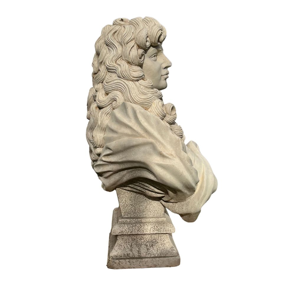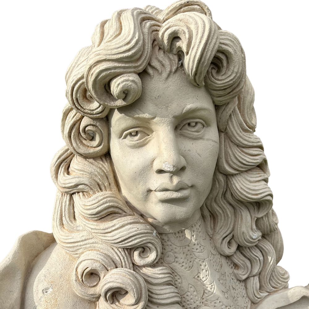 Scultura in pietra e marmo, periodo inizio XX secolo raffigurante Personaggio francese (parruccone)