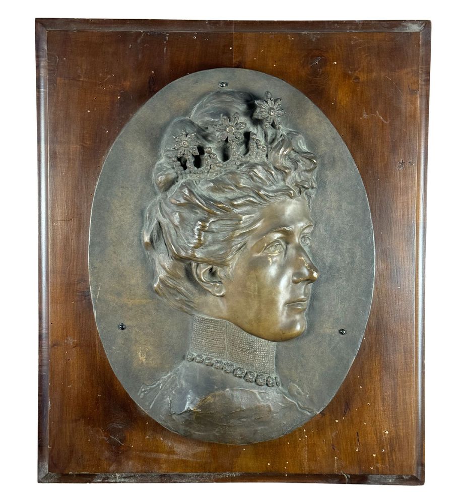 Scultura in alto rilievo in cera persa, periodo XX secolo raffigurante Elena del Montenegro. Dimensioni compreso: 66x55 cm. Dimensioni interno: 40x53 cm. Reca firma in basso a destra da Torelli. Scultura in buone condizioni.