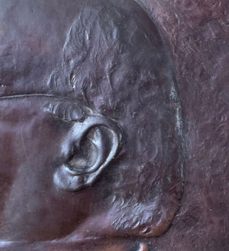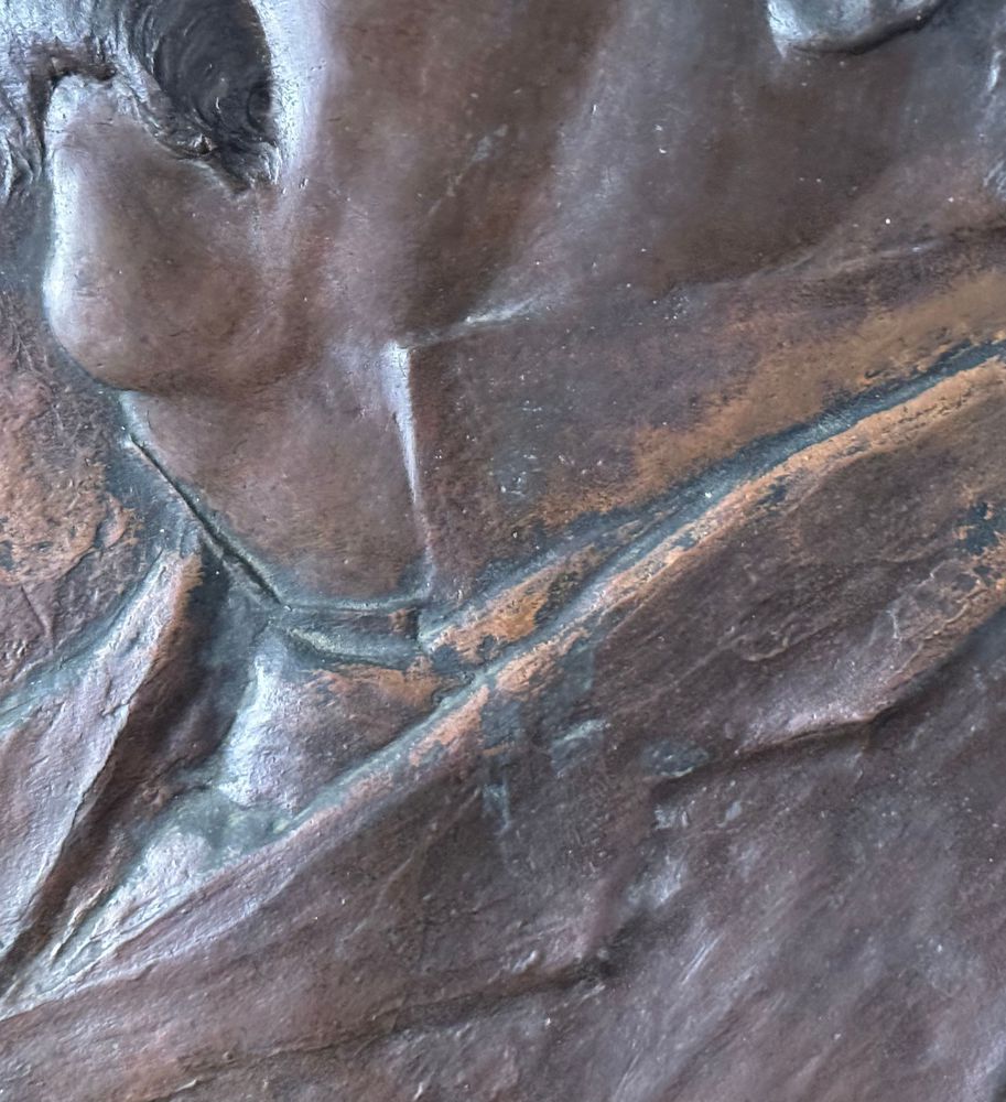 Scultura in alto rilievo in bronzo a cera persa, periodo XX secolo, raffigurante Napoleone Colajanni mazziniano e garibaldino. Dimensioni compreso cornice: 56x68 cm. Dimensioni interno cornice: 42x50 cm. Reca firma in basso a destra da G.Sutera.