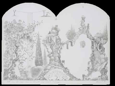 Antonio Brancato Floridia, Siracusa 1937 Nella casa del sogno l’anima del poeta pinge d’argento il paesaggio, 1981 matita su cartoncino applicato su tavola, cm 30x39,5. Titolato in basso a sinistra: Nella casa del sogno l’anima del poeta pinge d’argento il paesaggio Firmato e datato in basso a destra: A. Brancato 1981 Monogrammato e datato in alto al centro: AB 1981 Provenienza: Milano, Galleria Gian Ferrari; collezione privata. Autentica su fotografia della Galleria Gian Ferrari in data 4 luglio 1984.