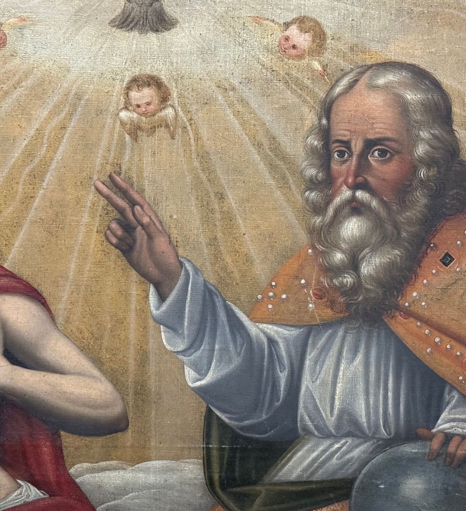 Dipinto olio su tela, periodo XIX secolo scuola Italiana, raffigurante Scena Biblica. Dimensioni compreso cornice: 123x158 cm. Dimensioni interno cornice: 102x137 cm. Da artista anonimo. Opera in buone condizioni.