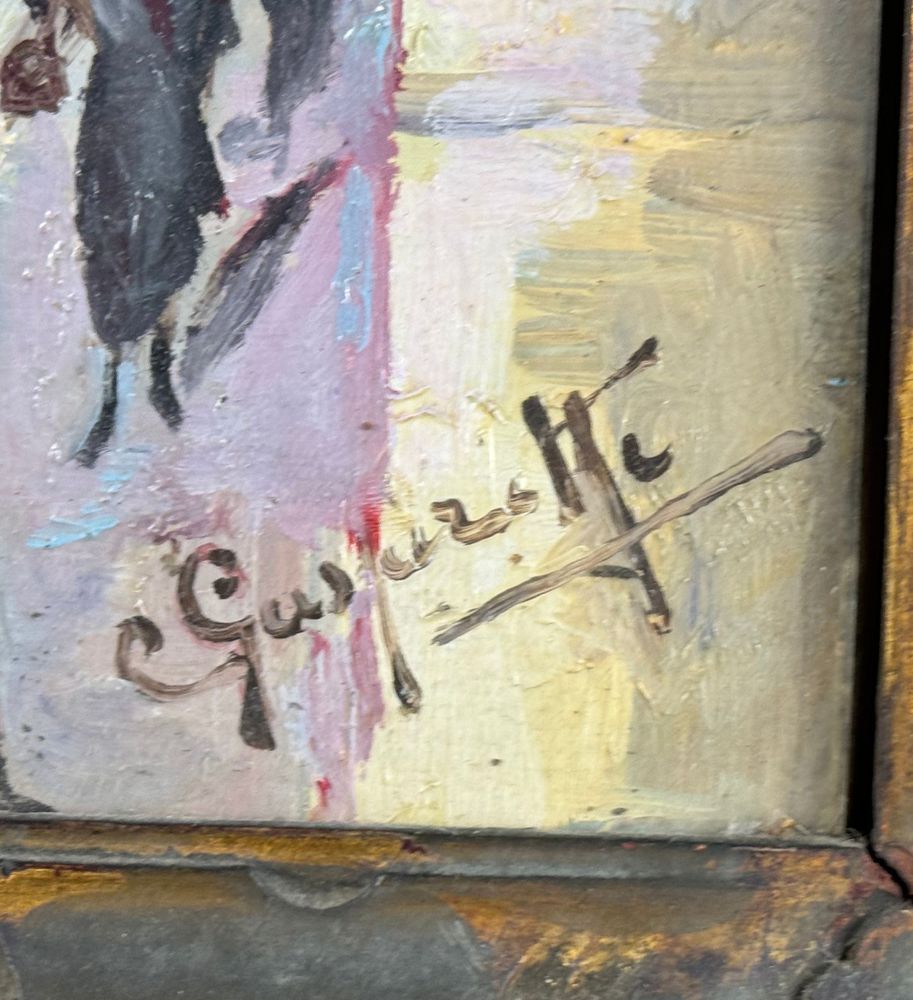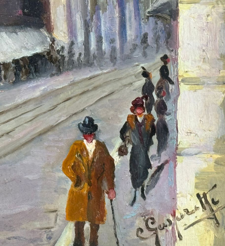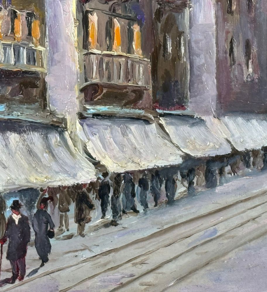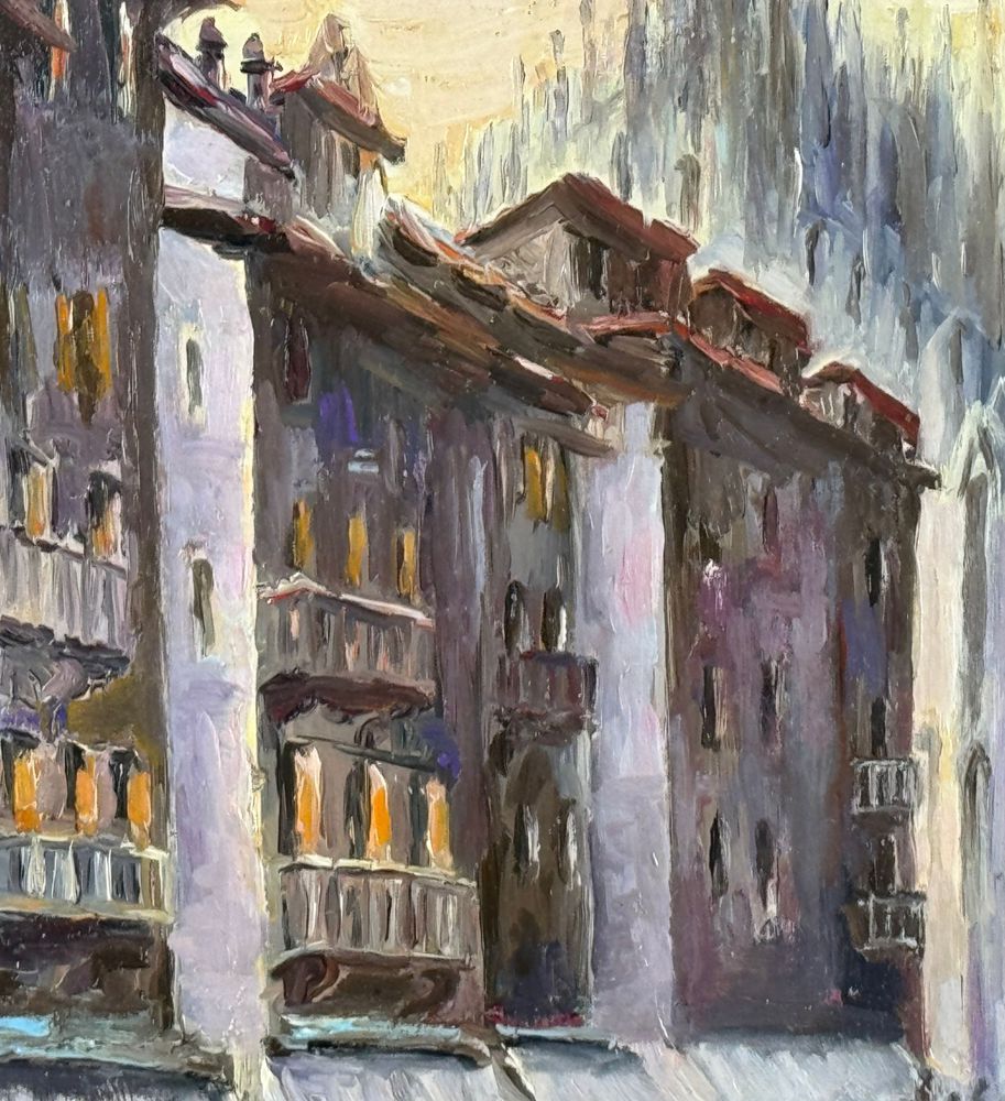 Dipinto olio su tela, periodo XX secolo scuola Italiana, raffigurante Milano. Dimensioni compreso cornice: 43x53 cm. Dimensioni interno cornice: 30x40 cm. Reca firma in basso a destra da artista non identificato. Opera in buone condizioni. Cornice difetti e mancanze.