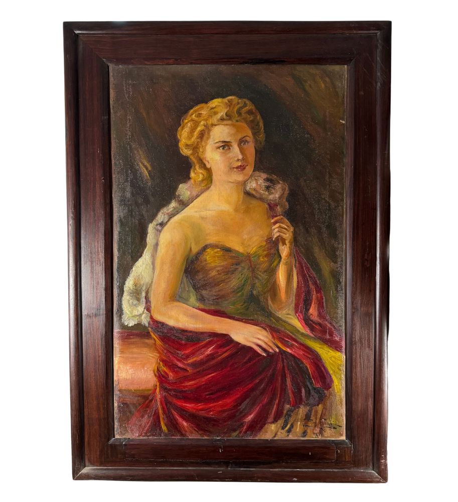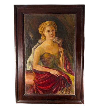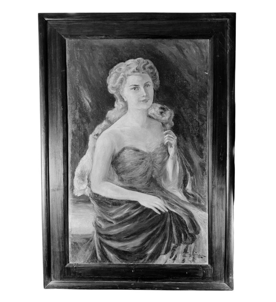 Dipinto olio su tela, periodo XIX secolo scuola italiana, raffigurante Ritratto di donna. Dimensioni compreso cornice: 95x136 cm. Dimensioni interno cornice: 69x113 cm. Reca firma in basso a destra da artista non identificato. Opera in buone condizioni con lievi segni di vissuto come da foto allegate.